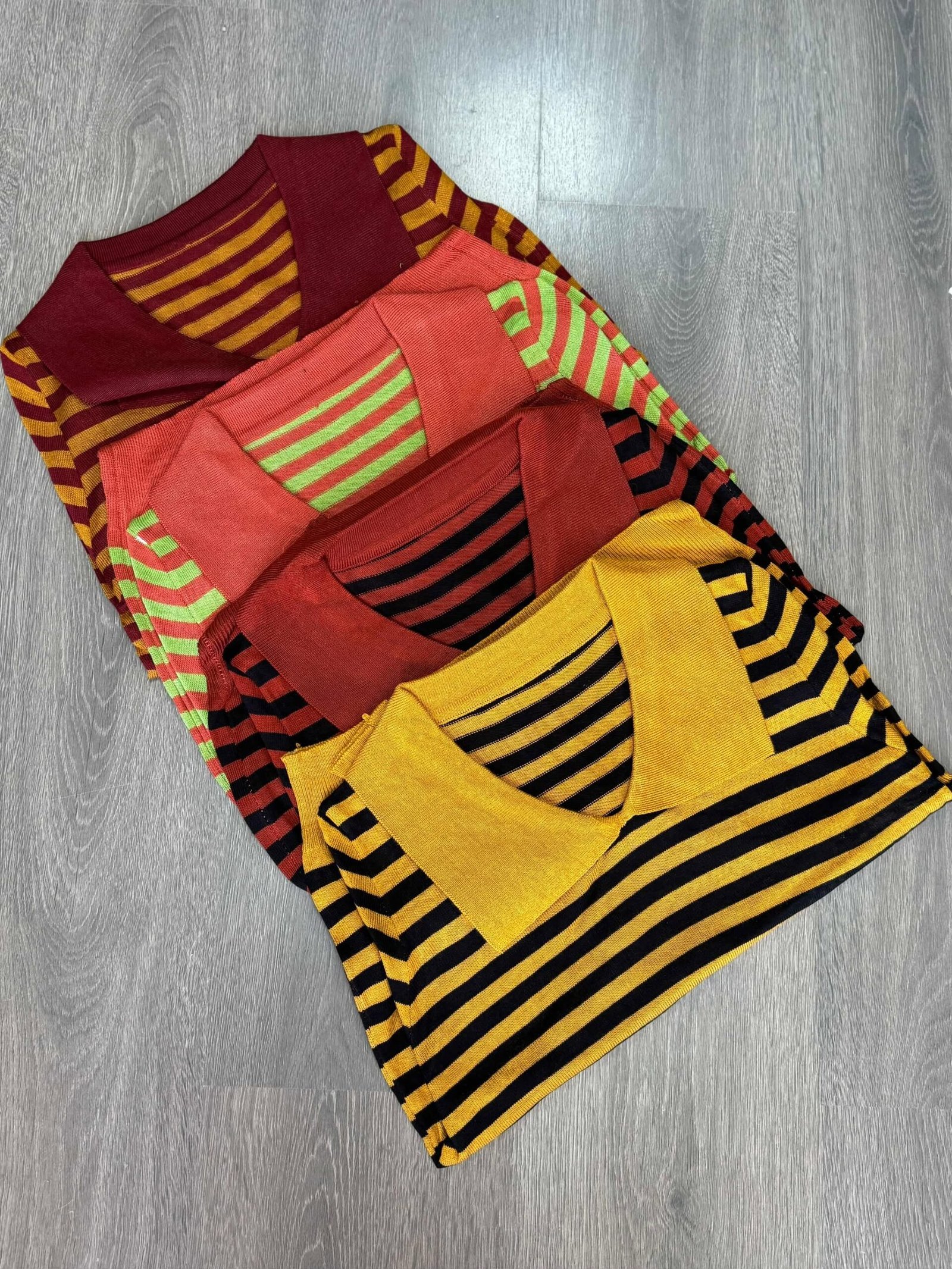| Colores | Mostaza con negro, Terracota con negro, Verde con naranja, Terracota con mostaza |